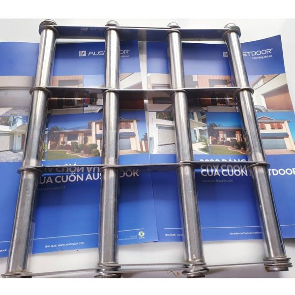 Cửa cuốn khớp thoáng Inox Austgrill sử dụng các thanh nan bằng INOX SUS304 cao cấp ghép nối với nhau dạnh lưới. Với các ô thoáng nổi bật đem lại trải nghiệm tuyệt vời khi tận hưởng một không gian thoáng đãng.